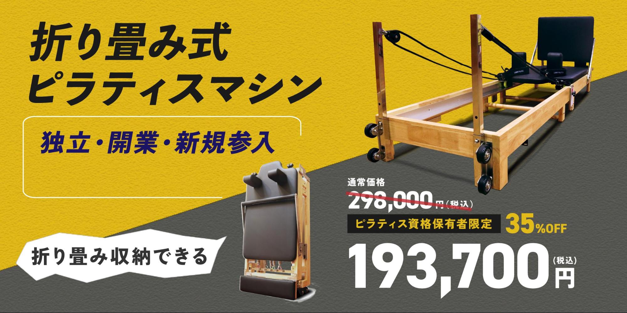 折り畳み式なので、女性の方でも簡単に広げる・折り畳むことができるので、通常のピラティスマシンよりも扱いやすく画期的なマシンです。